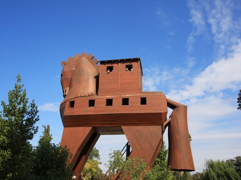 | これがかの有名なトロイの木馬です。トロイの木馬と聞いて、コンピュータウイルスしか思い浮かばない方、私もそうでした。今回の旅を通じて、トルコの歴史やギリシア神話についてかなり勉強になったと思います。ちなみに歴史は中学の頃から大嫌いな教科です。そんな前向きな男です。 |