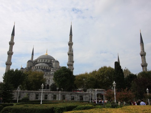 | イスラム教のブルーモスク。9月はちょうどラマダン(断食)の頃だったので、たくさんの信者が来られていました。トルコ人はそれほどきっちりラマダンを守るわけではないそうです。宗教というと厳格なイメージがあったのですが、割とゆるいところもあるんですね。 |