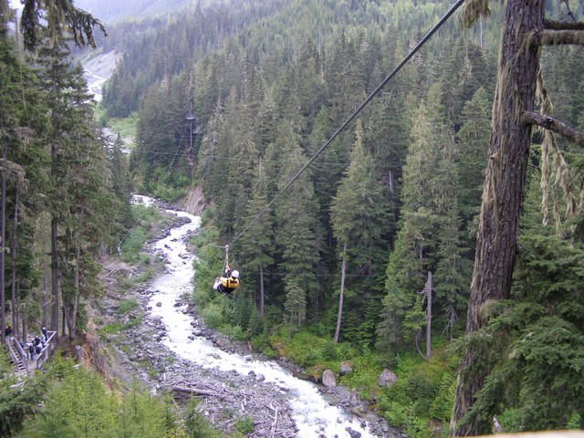 カナダでは主にウィスラーで滞在してました。ウィスラーはカナダのリゾート都市で、2010年バンクーバーオリンピックの山岳競技の主要会場となる予定だそうです。スポーツも盛んで冬はスキー・スノボー、今の時期はマウンテンバイクが有名です。確かにすごい数のマウンテンバイクでした。さらには今の時期でもスノーボード背負った人もいましたし。